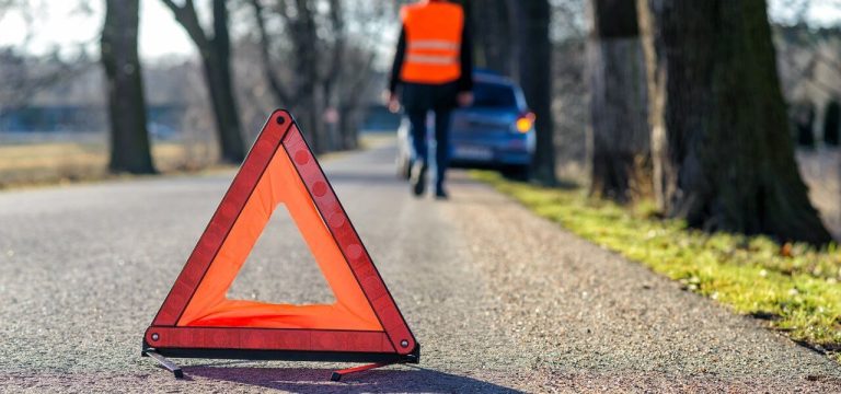 Schalten Sie die Warnblinkanlage ein, ziehen Sie eine Warnweste an und sichern Sie die Unfallstelle mit einem Warndreieck.